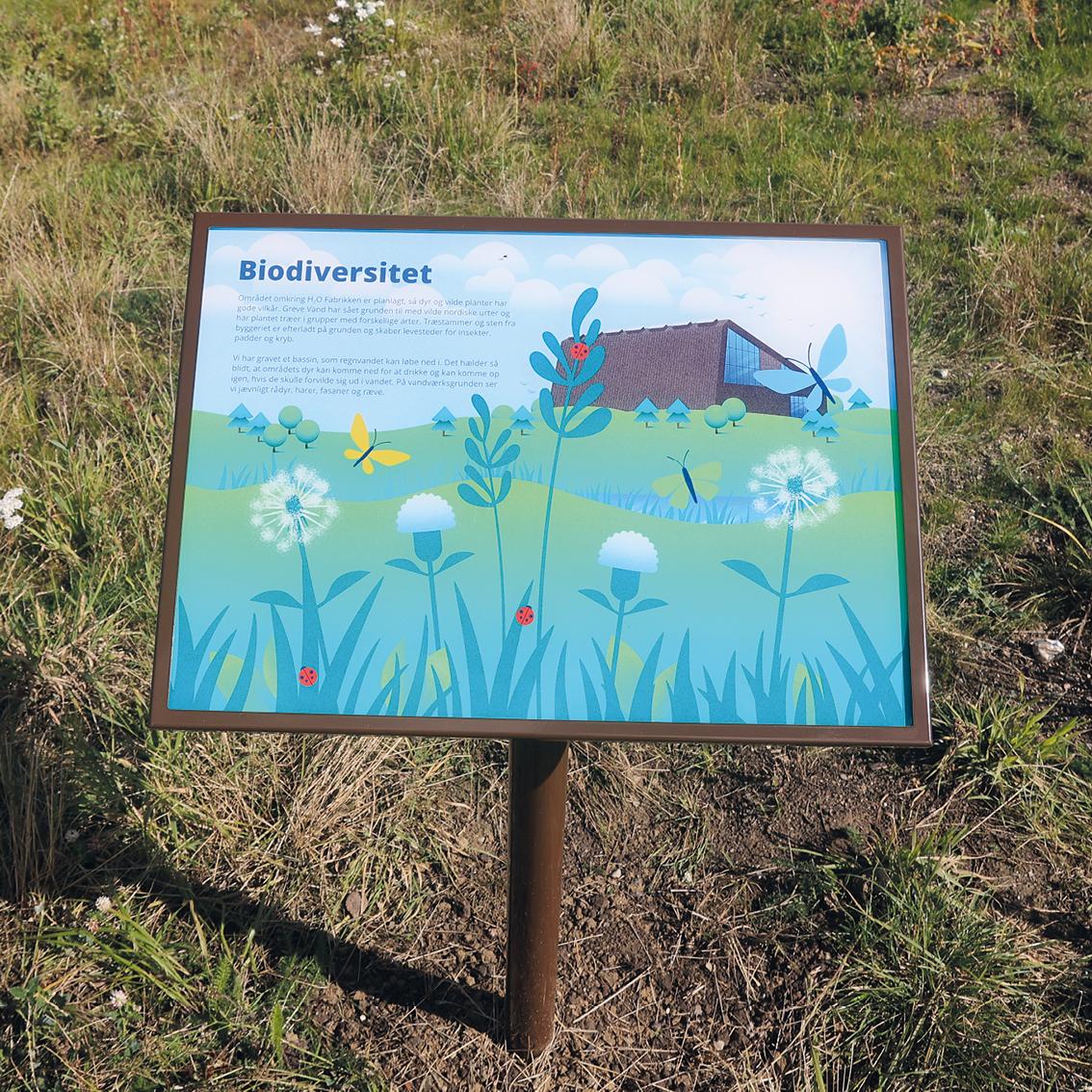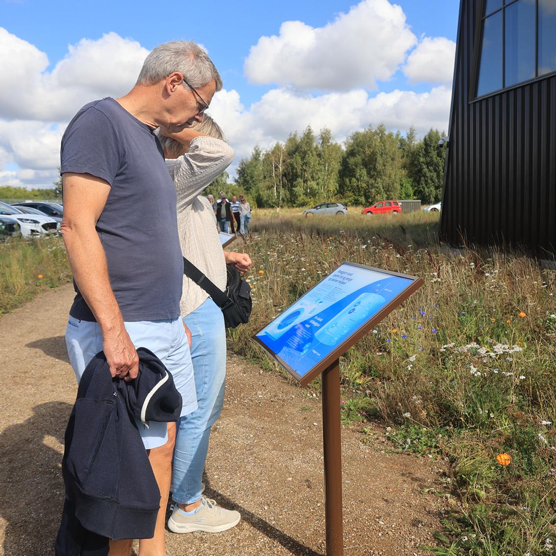 Grafikker og skilte er udviklet som pege-og-fortælle-elementer, der aktivt understøtter den mundtlige formidling. De hjælper rundviseren med at forklare og giver gæsterne noget konkret at se på, mens der fortælles.