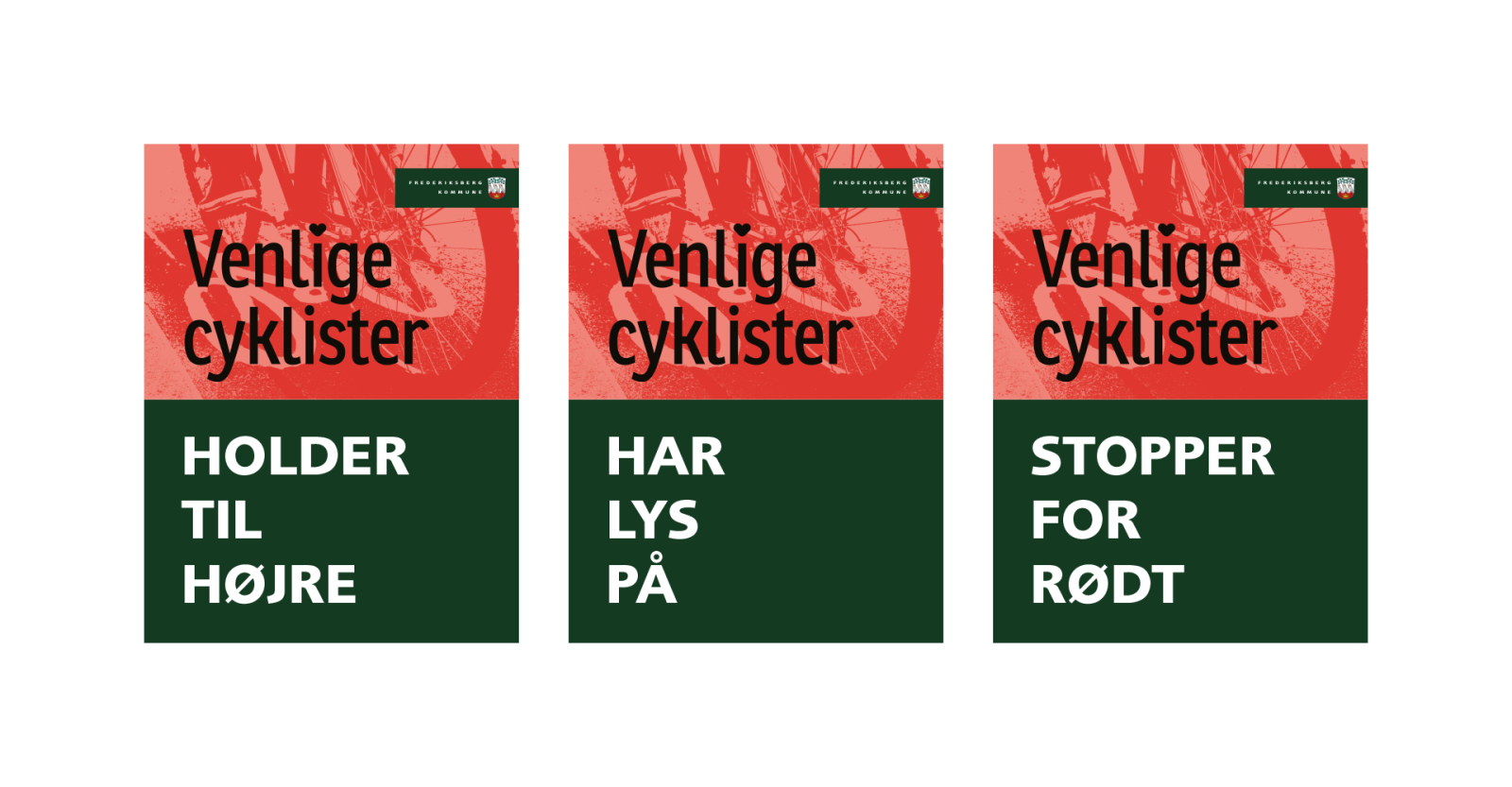 Vores grundlæggende filosofi er at formulere positive budskaber. Vi vil ikke løfte pegefingre og stigmatisere gode mennesker, der bare kører lidt frækt på cyklen. Det var også vigtigt at finde et budskab, der passer til mentaliteten på Frederiksberg. Det er pæne folk, som taler ordentligt til hinanden.