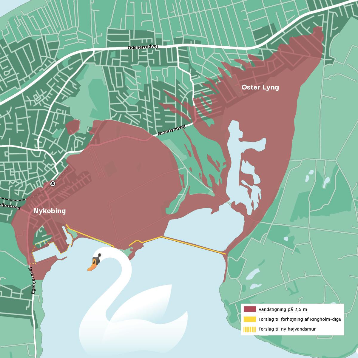 Stigende vandstand og risiko for stormflod betyder, at Odsherred Kommune bør sikre Nykøbing Sj og et nærliggende sommerhusområde mod oversvømmelser.